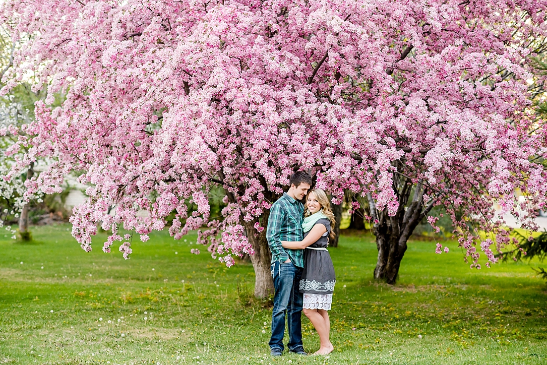 When Rachael and I started emailing back and forth about their anniversary session and the look we were going for, I mentioned that in the time frame that were planning their session for, there would probably be blossoms and we could do that for part of it. I had no idea how perfect the blossom trees were going to be this spring and I was so excited to have found “the tree” as I was driving around in Idaho Falls before the session.